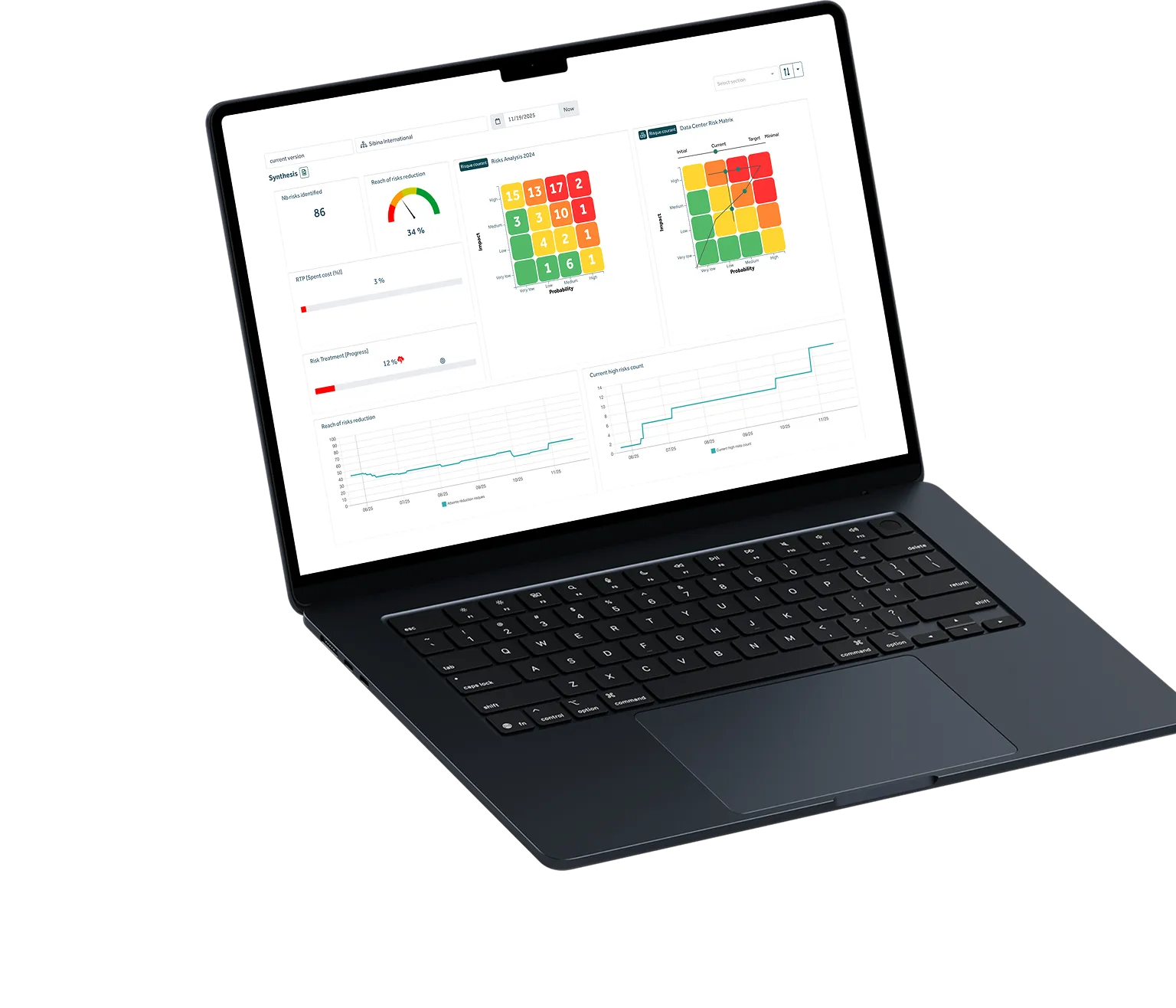 Analysez vos risques avec un catalogue métier, harmonisez votre plan de traitement aux exigences de conformité et pilotez en temps réel avec une visibilité optimale sur leur niveau courant.